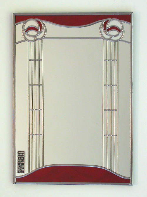 They are made with platinum coated lead to give a ‘stained glass’ leaded effect. The colour is achieved by using high quality, fade resistant, film mounted on to high grade mirror. The Mackintosh Rectangular Mirrors are often bought as special gifts, especially as they are presented in lovely black and silver gift boxes.